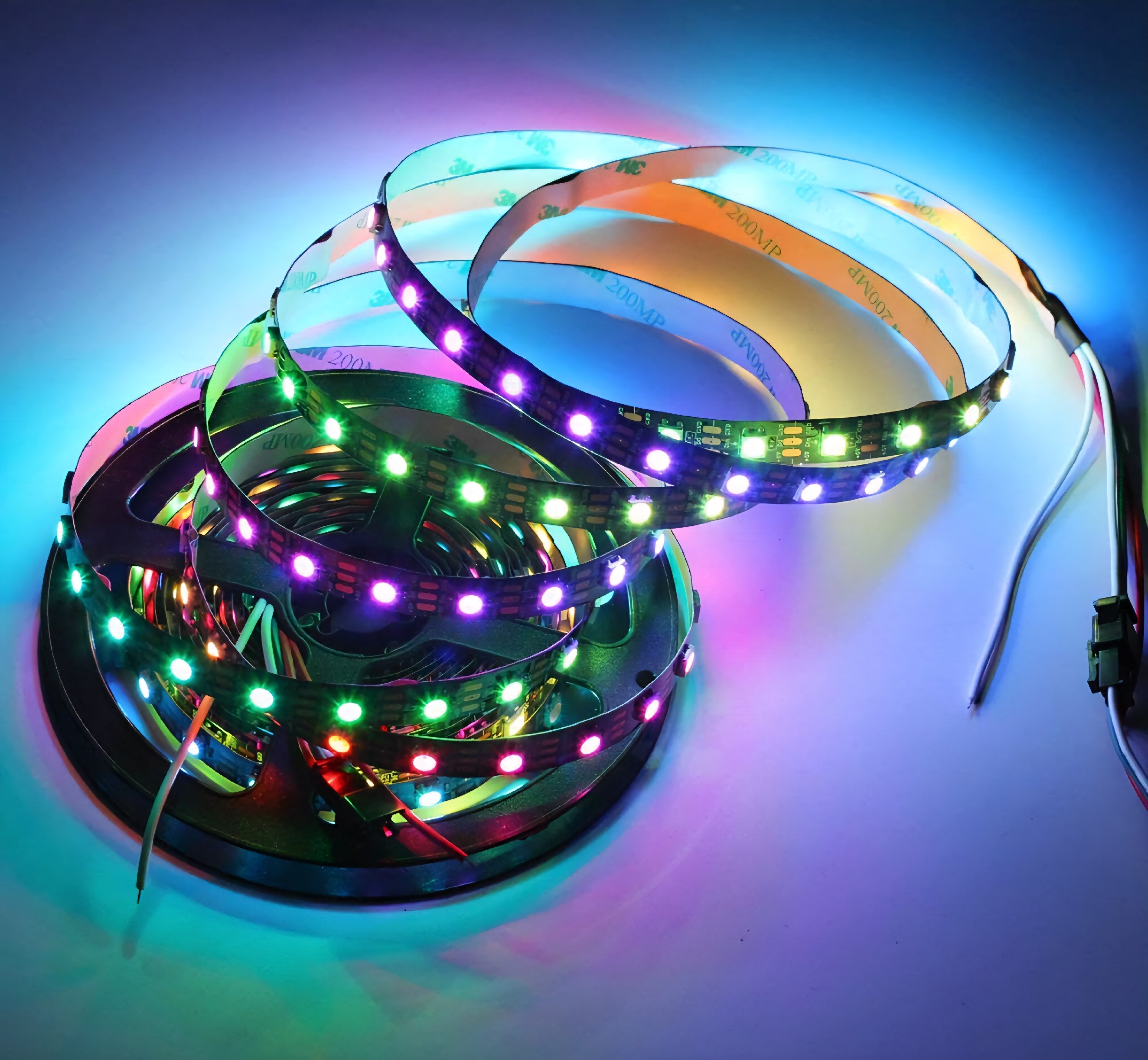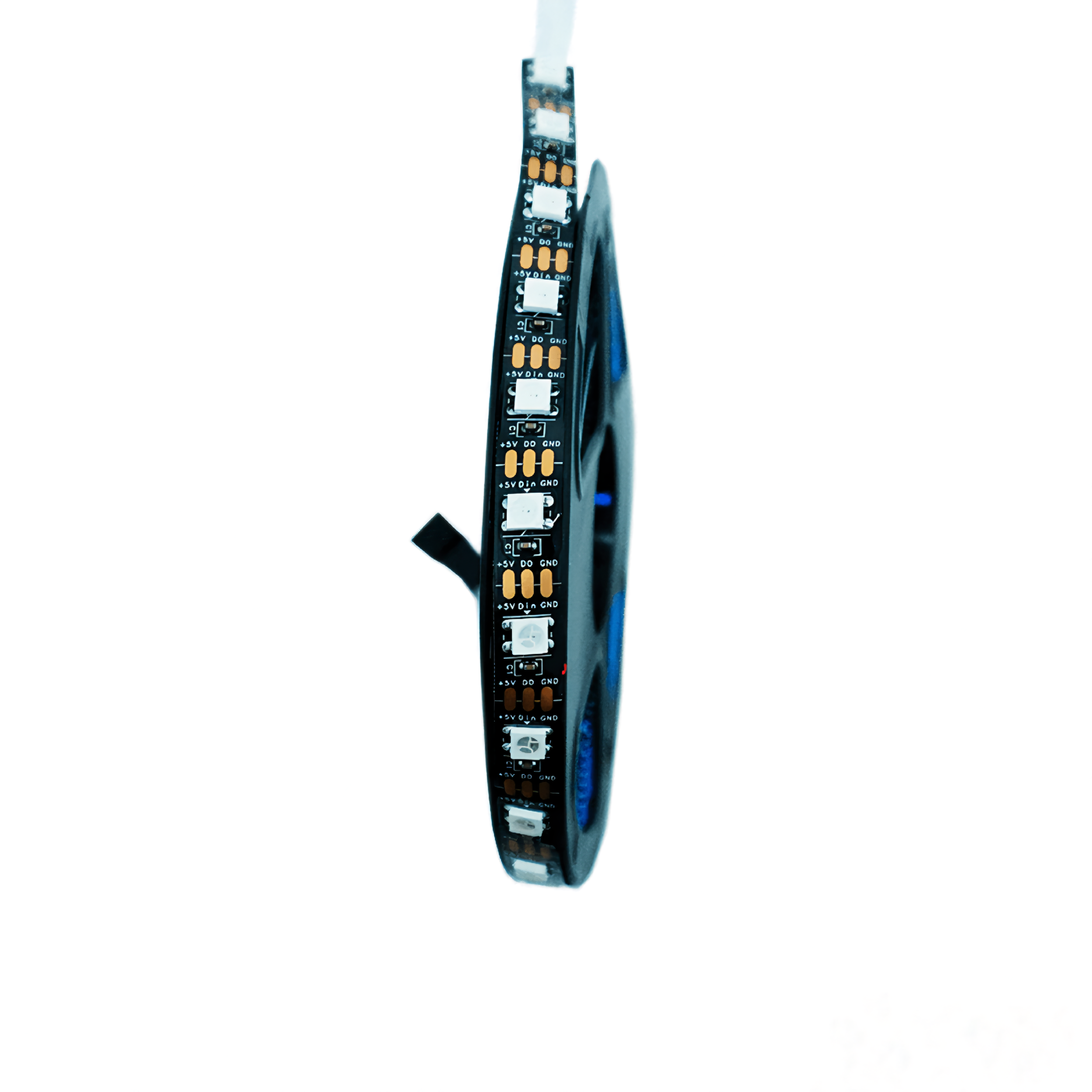 PIXEL LED STRIP 5V- Flexible, individually addressable RGB LED strip (60 LEDs/m, WS2812B) for stunning dynamic lighting. 5V DC, 14.4W/m, cuttable every LED, 3M adhesive backing.